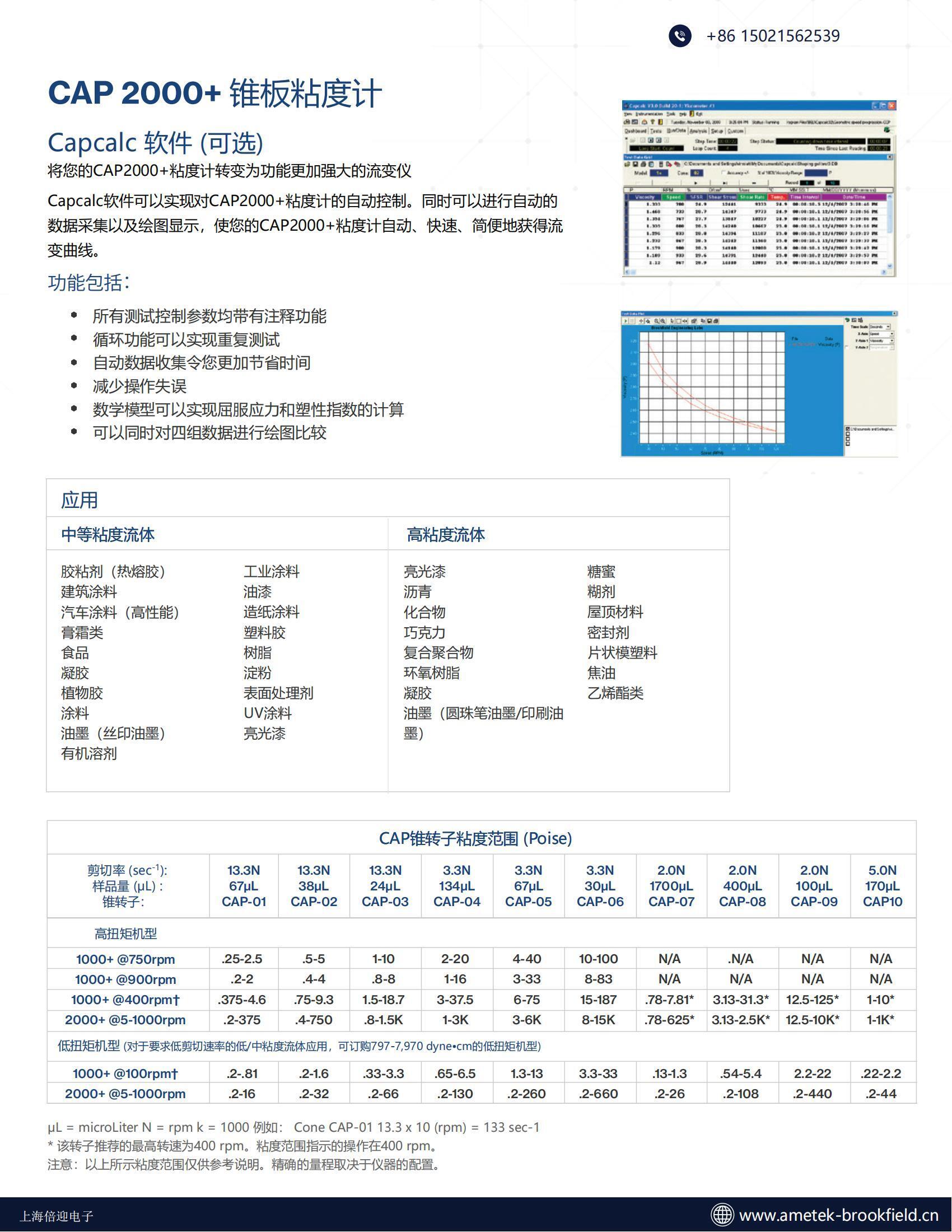 | 可选购的锥型转子 | 粘度标准液 | Capcalc软件 |